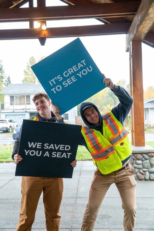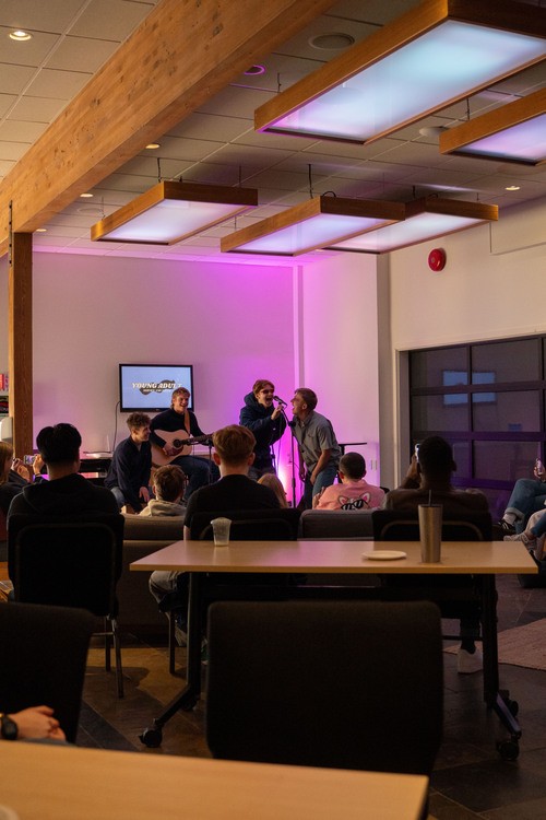 You can expect to be greeted at the door by our welcome team and they will be happy to let you know where to go. If you have kids that need to be checked-in to Sunday School, look for our team in the blue shirts and you can find the check-in table just a few steps through the entrance. You can feel free to grab a coffee or tea on us and then head into our auditorium where the service will be happening. Our service is usually 75 minutes long with live worship, some announcements, a teaching from the Bible, some time in prayer and reflection, and a chance to take a next step.